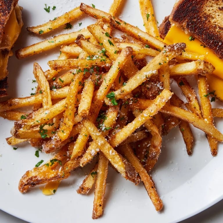 I made this for my sister on a lazy Sunday, and she actually put her phone down for the entire meal—that's when I knew it was something special. Watching someone's face light up when they bite into a grilled cheese that's both crispy and melty, followed by a fry that tastes like it came from a steakhouse, never gets old.