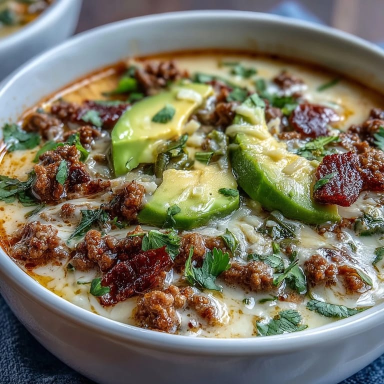 Save My husband came home one Tuesday evening raving about a taco soup he'd had at a food truck, but when he described it, I realized it was probably loaded with beans and tortillas—total carb overload. That night, I decided to build my own version that actually fit our keto lifestyle, and honestly, what emerged from that pot was better than anything he'd tasted. The cream cheese melting into the broth created this luxurious richness that made the whole thing feel indulgent without any of the guilt.