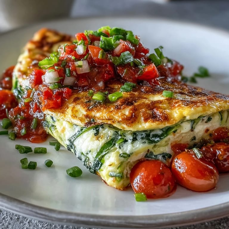 - Slide the omelette onto a plate, fold it in half, and spoon your vibrant salsa on top. Serve immediately while everything is warm and the omelette still has that gentle give to it.