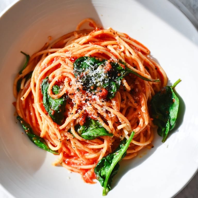 Save There's something magical about opening a jar of marinara on a Tuesday night when you've got twenty minutes and three hungry people waiting at the table. I discovered this combination completely by accident—I'd bought too much spinach that was about to wilt, threw it into the simmering sauce almost as an afterthought, and suddenly had something that tasted like I'd spent all afternoon on it. Now it's become my secret weapon for nights when cooking feels impossible but eating well still matters.