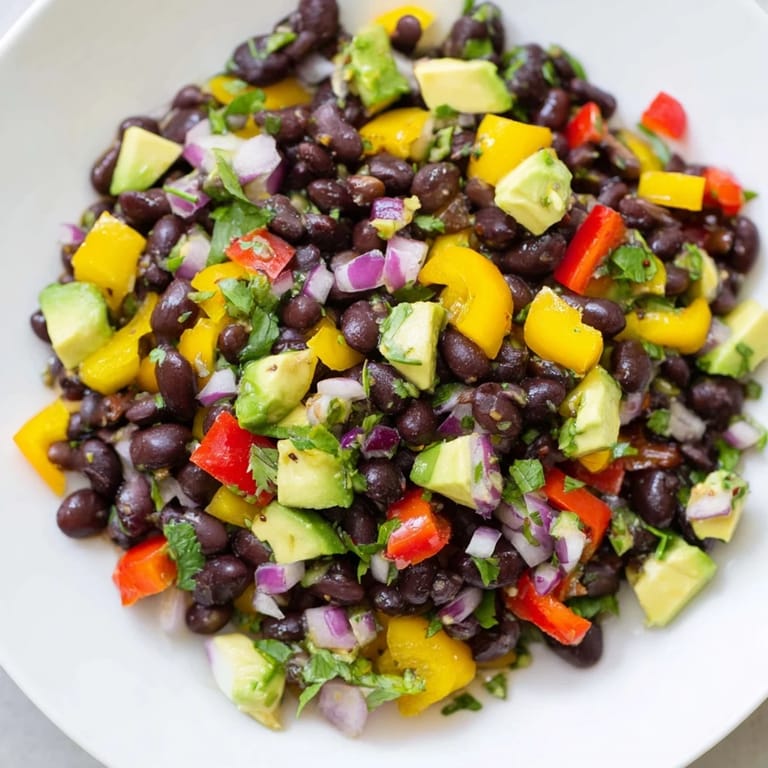 Save I discovered this salad on a sweltering afternoon when a friend showed up with a pile of farmers market peppers and asked me to throw together something cold. I had a can of black beans in the pantry and some limes on the counter, so I started chopping and tossing, tasting as I went. Twenty minutes later, we were eating straight from the bowl on her apartment balcony, and she asked for the recipe before she even finished her first bite. That's when I realized this wasn't just a quick lunch fix—it was something people actually wanted to come back to.