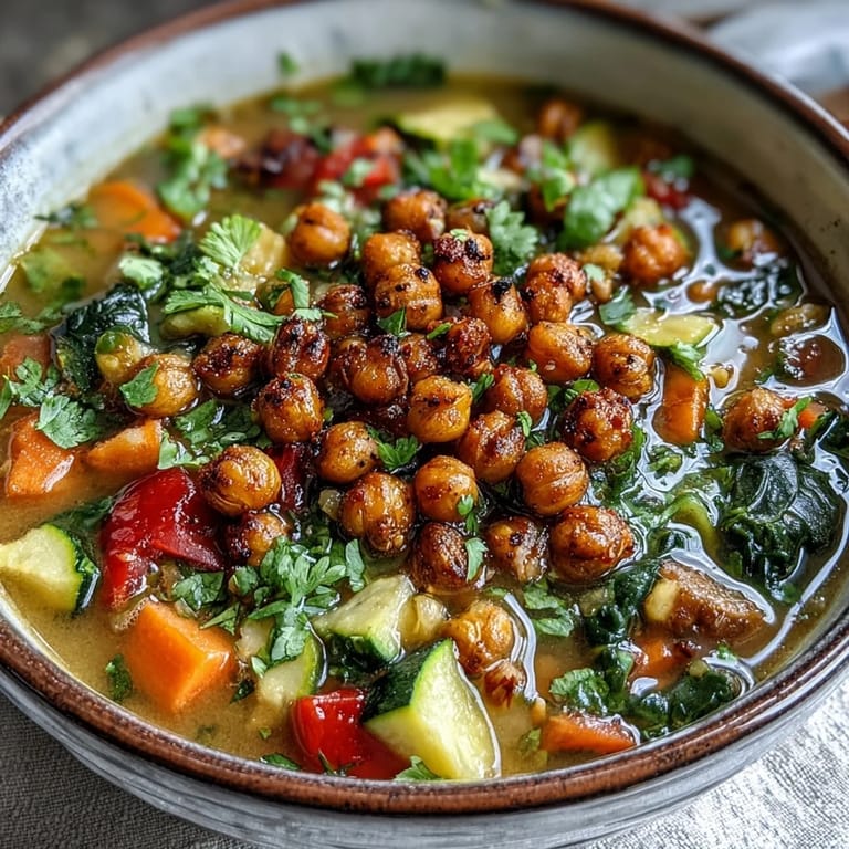 Save My kitchen was unbearably cold last November when I decided to experiment with roasting chickpeas instead of just tossing them into soup. The smell of smoked paprika hitting the oven heat stopped me mid-thought—suddenly this wasn't just another weeknight dinner, it was something I wanted to actually taste. That small shift, roasting instead of simmering, turned a simple vegetable soup into something with real texture and personality that my friends kept asking about for weeks afterward.