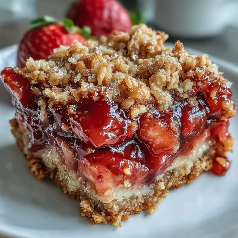 Save Whenever strawberries and rhubarb first appear at the farmers' market, I can’t help but think of that morning sunlight streaming into my kitchen, splashing across a basket of fruit and a bag of oats. It’s these simple, unhurried days that call for something that feels a bit like a celebration, but with very little fuss. One spring, I found myself humming along to a favorite playlist, hands happily sticky with melted butter and the tart tang of rhubarb, determined to invent the ideal snack for a chilly picnic. These Strawberry Rhubarb Crumble Bars were born mostly by accident, with barely a quick glance at the clock, and their scent alone had everyone drifting into the kitchen. I still remember the crinkle of parchment paper as I lifted the bars out, blushing with bubbling fruit beneath golden crumbs.