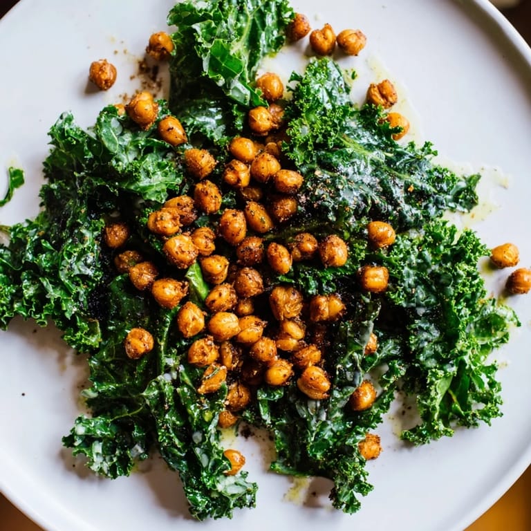 The base of kale and crispy chickpeas is endlessly adaptable. I have added roasted sweet potato cubes in autumn and fresh radish slices in spring each version feels like a completely different salad.
